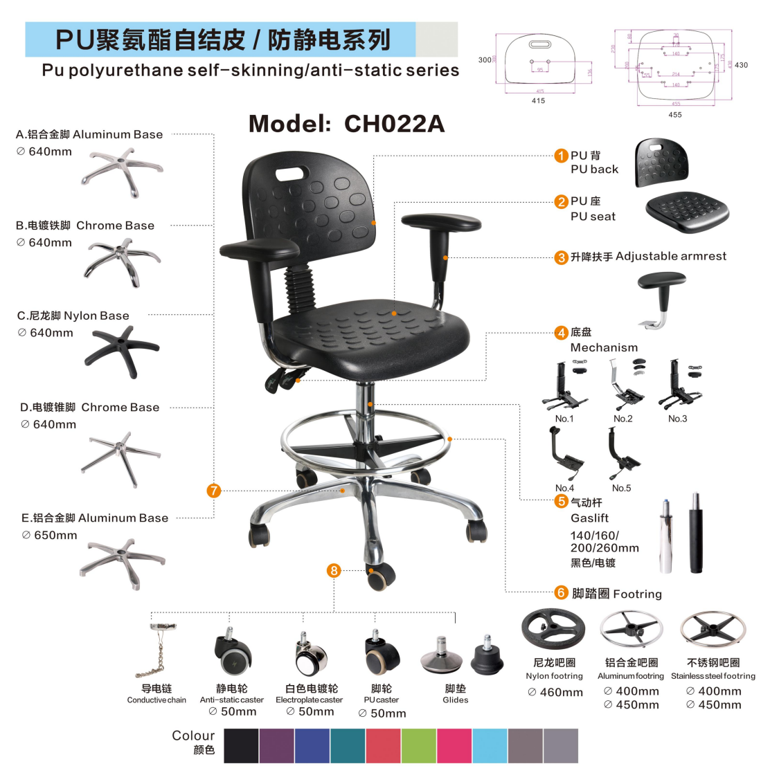 • ESD safe industrial chair with contoured polyurethane cushion laboratory seating